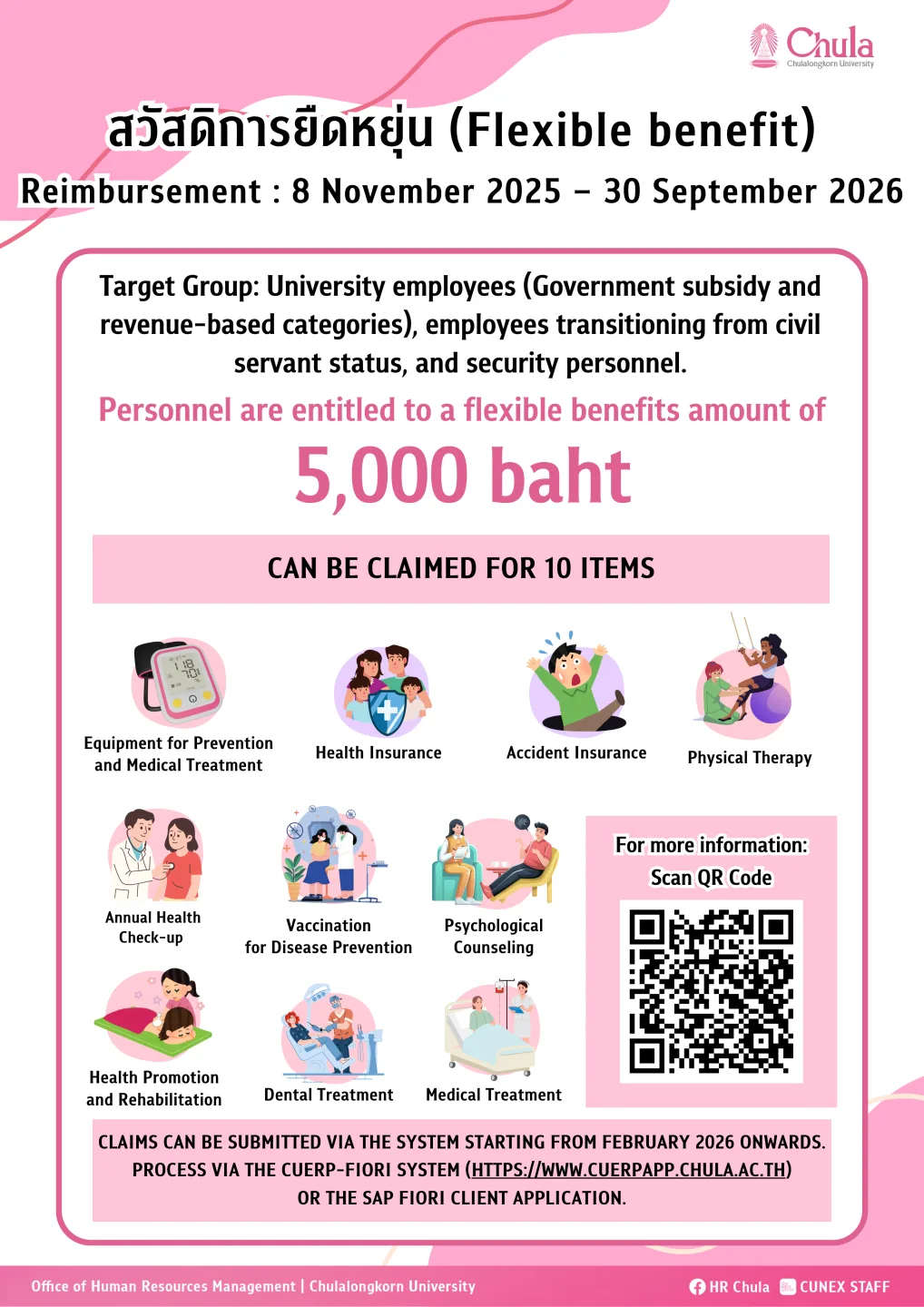 “Flexible Health Benefits” refers to a health benefit system established by Chulalongkorn University, allowing university staff to select benefits that best meet their personal needs.