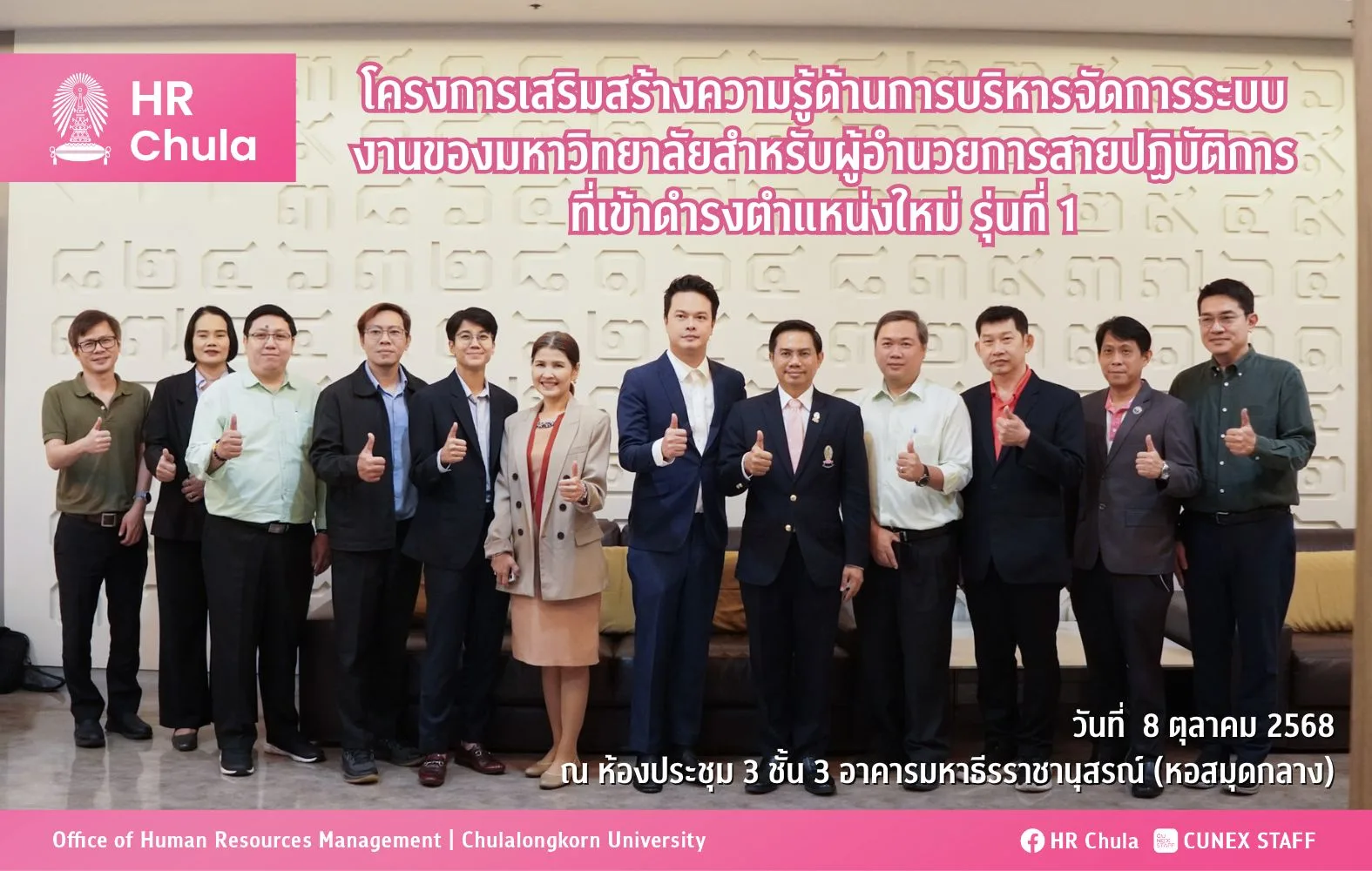 วันพุธที่ 8 ตุลาคม 2568 สำนักบริหารทรัพยากรมนุษย์ ได้ดำเนินการจัดโครงการเสริมสร้างความรู้ด้านการบริหารจัดการระบบงานของมหาวิทยาลัยสำหรับผู้อำนวยการสายปฏิบัติการที่เข้าดำรงตำแหน่งใหม่ รุ่นที่ 1 เพื่อสร้างความเข้าใจในด้านการบริหารงานที่เกี่ยวข้องสำหรับผู้ดำรงตำแหน่งผู้อำนวยการสายปฏิบัติการที่เข้าดำรงตำแหน่งใหม่ รวมถึงการเข้าใจในบทบาทของผู้นำต่อการเปลี่ยนแปลงและความท้าทายของการบริหารคนใน ณ ห้องประชุม 3 ชั้น 3 อาคารมหาธีรราชานุสรณ์ (หอสมุดกลาง) โดยมี ศ. ดร.คณพล จันทน์หอม รองอธิการบดี ให้เกียรติเป็นผู้กล่าวเปิดโครงการดังกล่าว รวมถึงเป็นผู้บรรยายพิเศษในหัวข้อ “คุณธรรมและความโปร่งใสในการดำเนินงานและข้อพึงระวังทางกฎหมายของผู้บริหารมหาวิทยาลัย”