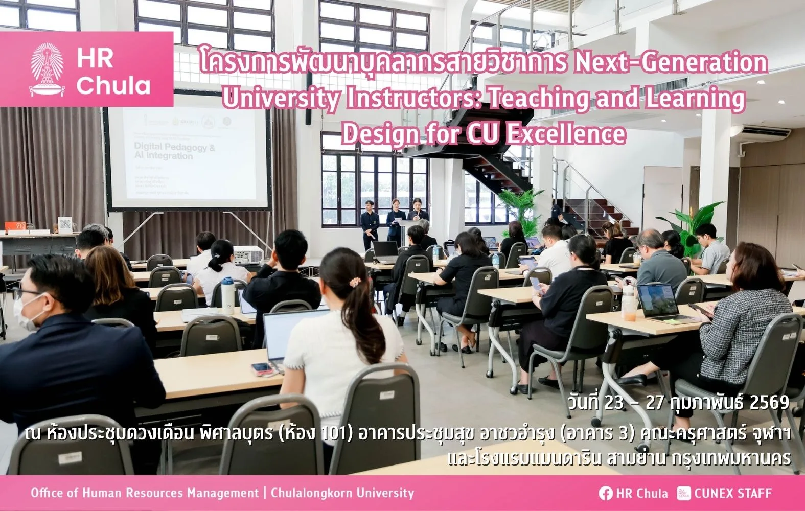 วันศุกร์ที่ 31 ตุลาคม 2568 จุฬาลงกรณ์มหาวิทยาลัย โดยสำนักบริหารทรัพยากรมนุษย์ ร่วมกับคณะอักษรศาสตร์ ได้ดำเนินการจัดโครงการอบรมเชิงปฏิบัติการ เรื่อง การร่างหนังสือราชการ สำหรับบุคลากรจุฬาลงกรณ์มหาวิทยาลัย รุ่นที่ 8 ณ ห้องนิทรรศการ ชั้น 7 อาคารมหาธีรราชานุสรณ์ (หอสมุดกลาง) เพื่อให้บุคลากรได้รับความรู้และพัฒนาทักษะการร่างหนังสือราชการให้ถูกต้อง โดยได้รับเกียรติจากรองอธิการบดี (ศาสตราจารย์ ดร.คณพล จันทน์หอม) เป็นประธานเปิดการอบรม และได้รับเกียรติจาก รองศาสตราจารย์ ดร.อาทิตย์ ชีรวณิชย์กุล ภาควิชาภาษาไทย คณะอักษรศาสตร์ เป็นวิทยากรในครั้งนี้