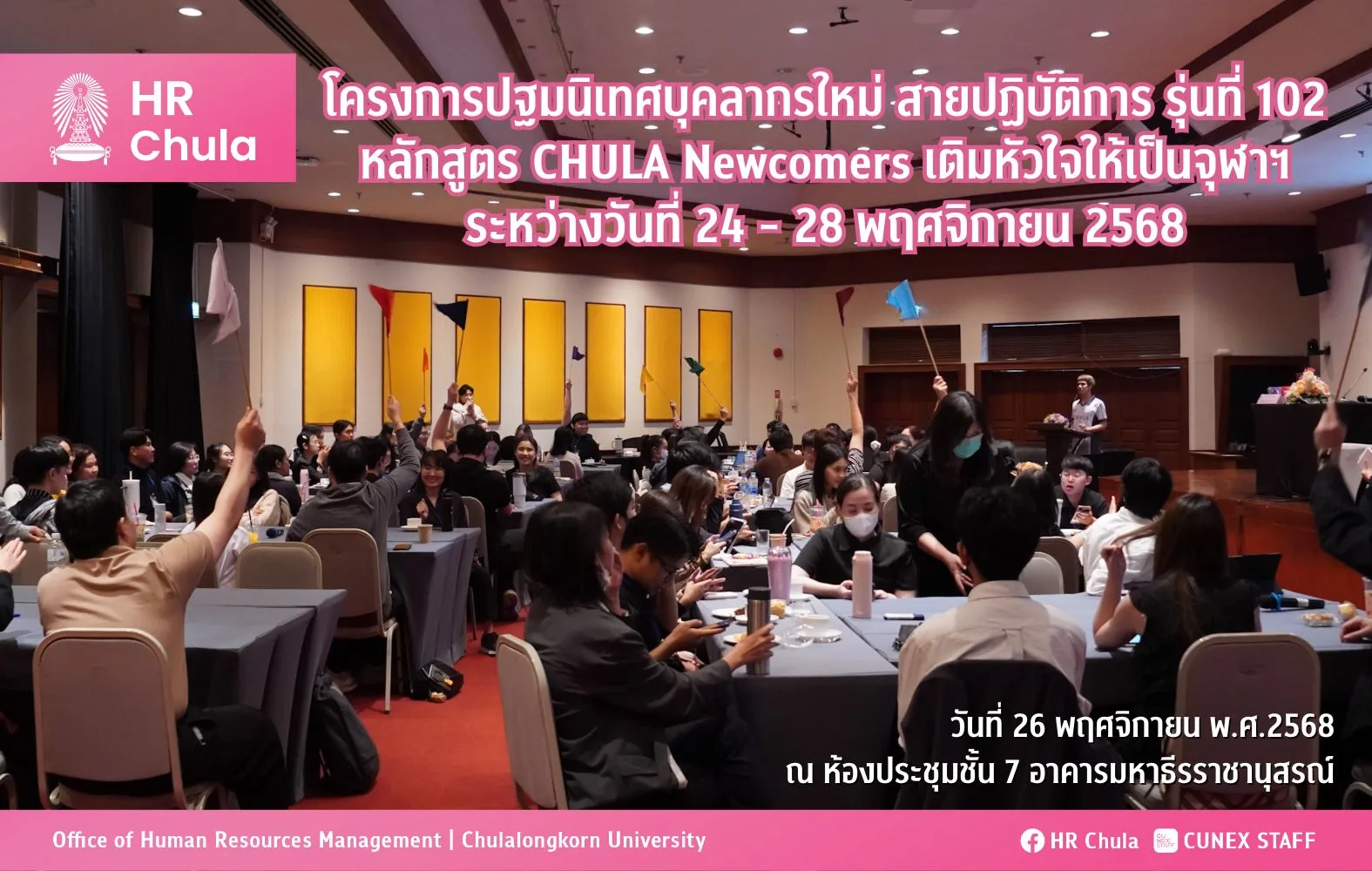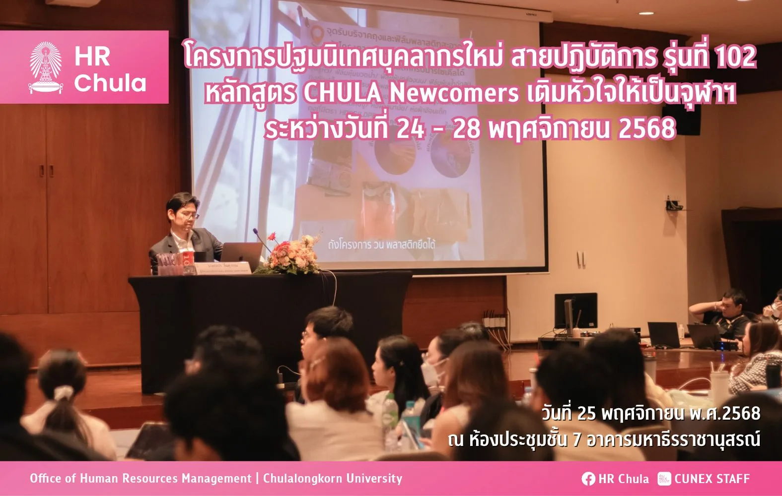 โครงการปฐมนิเทศบุคลากรใหม่ สายปฏิบัติการ รุ่นที่ 102 หลักสูตร CHULA Newcomers เติมหัวใจให้เป็นจุฬาฯ ระหว่างวันที่ 24 – 28 พฤศจิกายน 2568 (24.11.25)
